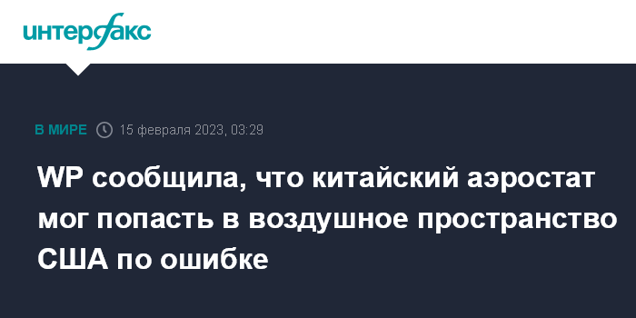 WP сообщила, что китайский аэростат мог попасть в воздушное пространство США по ошибке