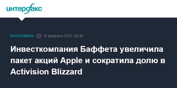 Инвесткомпания Баффета увеличила пакет акций Apple и сократила долю в Activision Blizzard
