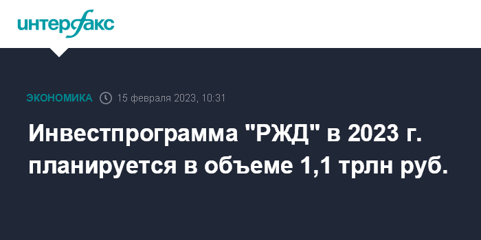 Москва. 15 февраля. INTERFAX.RU - Инвестпрограмма ОАО "РЖД" в 2023 году планируется в объеме 1,1 трлн рублей, заявил первый вице-премьер РФ Андрей Белоусов в ходе итогового заседания правления РЖД за 2022 год.