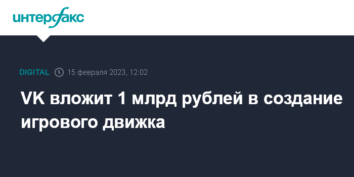 Москва. 15 февраля. INTERFAX.RU - Интернет-компания VK инвестирует 1 млрд рублей в разработку базовой версии игрового движка (ПО для разработки игр), сообщил на пресс-конференции руководитель компании Владимир Кириенко.