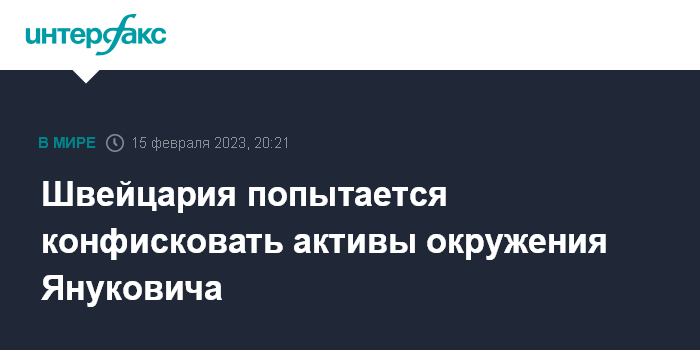 "На заседании 15 февраля федеральный совет решил начать административные процедуры, цель которых, – конфисковать активы, замороженные в Швейцарии после революции на Украине в феврале 2014 года", - говорится в сообщении правительства. В нем подчеркивается, что, по мнению властей, у данных активов, принадлежавших окружению Януковича, было незаконное происхождение. Власти Швейцарии поясняют, что данная инициатива никак не связана с санкциями, которые Берн ввел за последний год против России.