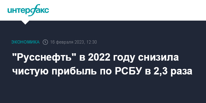 Москва. 16 февраля. INTERFAX.RU - ПАО "Русснефть" по итогам 2022 года получило чистую прибыль в 8,407 млрд рублей по РСБУ, что в 2,3 раза меньше результата предыдущего года - 19,444 млрд рублей, сообщается в отчете компании.