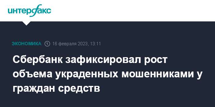 Москва. 16 февраля. INTERFAX.RU - Количество телефонных мошенничеств в 2023 году снижается, однако объемы украденных у россиян средств увеличиваются, сообщил заместитель председателя правления Сбербанка Станислав Кузнецов журналистам в четверг в кулуарах Уральского форума "Кибербезопасность в финансах" в Екатеринбурге.