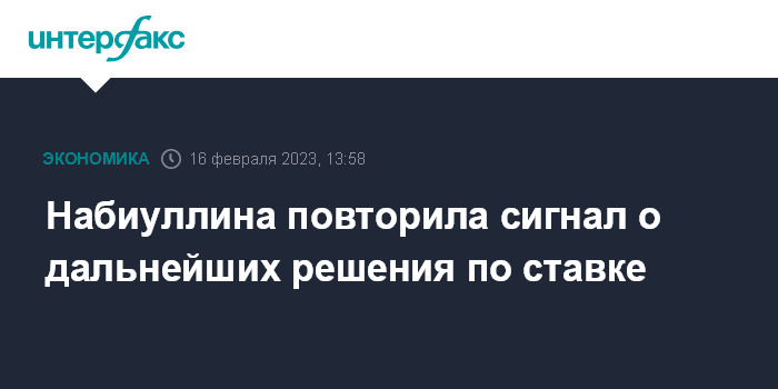 Москва. 16 февраля. INTERFAX.RU - Сигнал Банка России по будущей направленности денежно-кредитной политики остается неизменным: ставка может быть повышена, если реализуются риски, заявила журналистам председатель ЦБ Эльвира Набиуллина.