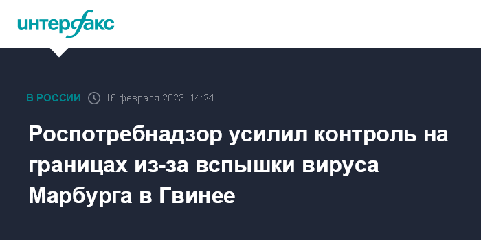 Москва. 16 февраля. INTERFAX.RU - Роспотребнадзор сообщил, что усилил санитарно-карантинный контроль на границах России из-за вспышки в Экваториальной Гвинее вируса Марбург - одного из опаснейших вирусов в мире. Вспышку подтвердила ВОЗ.