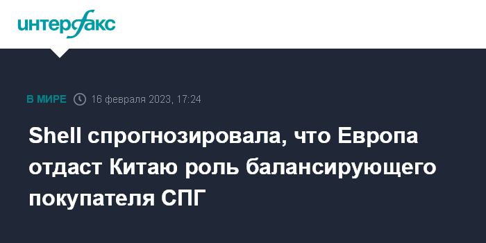 Shell спрогнозировала, что Европа отдаст Китаю роль балансирующего покупателя СПГ