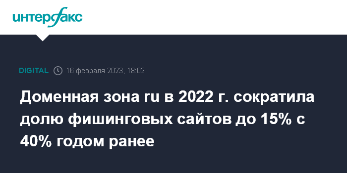 Доменная зона ru в 2022 г. сократила долю фишинговых сайтов до 15% с 40% годом ранее