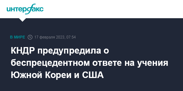 Москва. 17 февраля. INTERFAX.RU - КНДР беспрецедентно ответит на военные учения США и Южной Кореи, предупредил представитель МИД Северной Кореи, статью которого публикует ЦТАК.