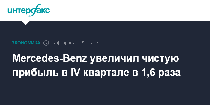 Москва. 17 февраля. INTERFAX.RU - Германский производитель автомобилей Mercedes-Benz Group AG увеличил чистую прибыль в четвертом квартале 2022 года в 1,6 раза, выручку - на 16%.
