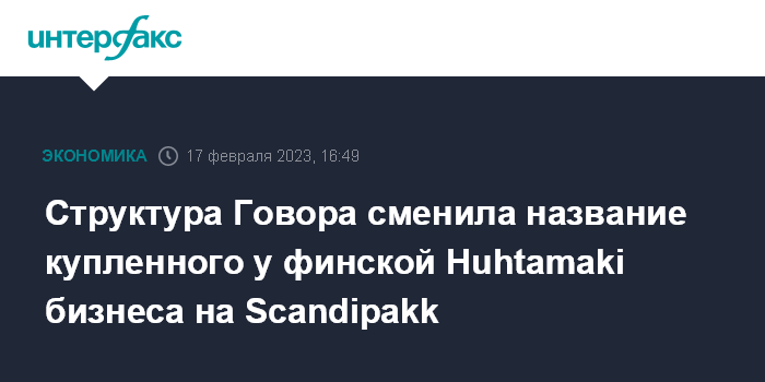 Структура Говора сменила название купленного у финской Huhtamaki бизнеса на Scandipakk