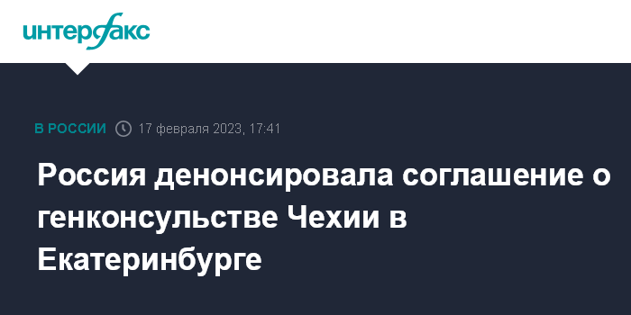 Россия денонсировала соглашение о генконсульстве Чехии в Екатеринбурге