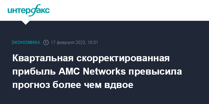 Москва. 17 февраля. INTERFAX.RU - В IV квартале 2022 года американская медиакомпания AMC Networks Inc. получила чистый убыток из-за списаний, связанных с реорганизацией бизнеса, но ее скорректированная прибыль выросла в пять раз и более чем в два раза превысила прогнозы рынка.