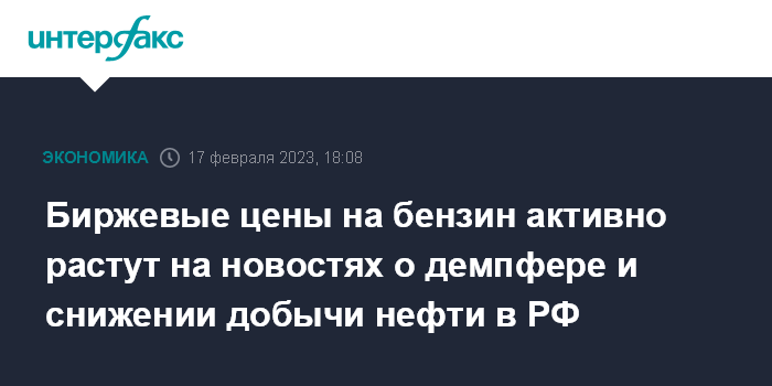 Биржевые цены на бензин активно растут на новостях о демпфере и снижении добычи нефти в РФ