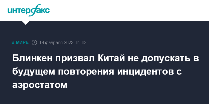 Блинкен призвал Китай не допускать в будущем повторения инцидентов с аэростатом