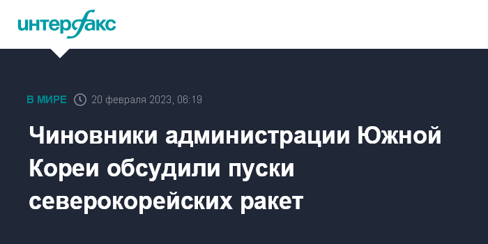 Москва. 20 февраля. INTERFAX.RU - Чиновники администрации президента Южной Кореи встретились в понедельник для обсуждения ситуации в области безопасности на фоне запуска ракет КНДР.