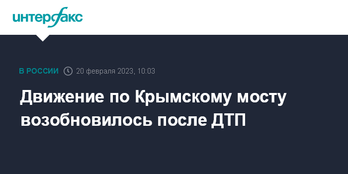 Москва. 20 февраля. INTERFAX.RU - На Крымском мосту движение автомобилей возобновилось в обе стороны, сообщила администрация Темрюкского района. Мост перекрывали после столкновения трех автомобилей.
