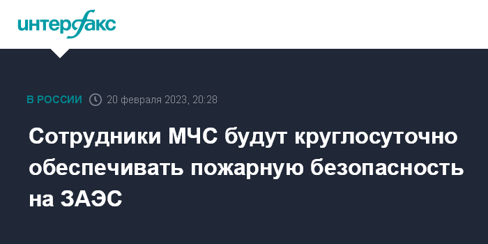 Москва. 20 февраля. INTERFAX.RU - Сотрудники МЧС в круглосуточном режиме будут обеспечивать пожарную безопасность на Запорожской АЭС, сообщила пресс-служба ведомства в понедельник.