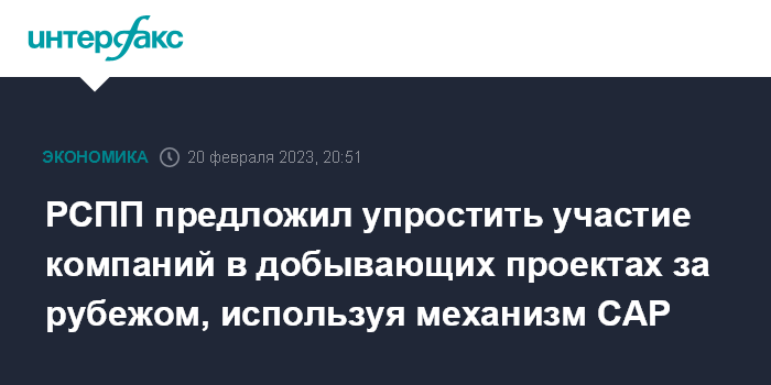 РСПП предложил упростить участие компаний в добывающих проектах за рубежом, используя механизм САР