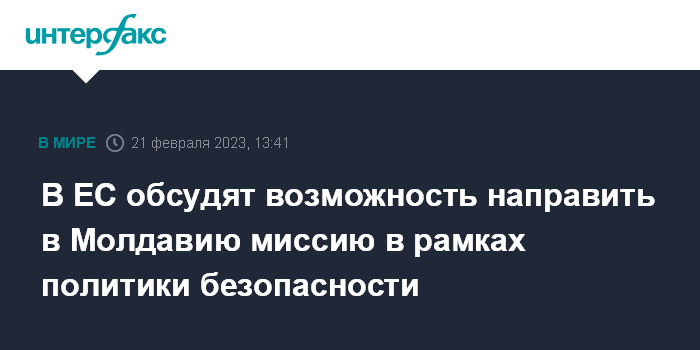 Москва. 21 февраля. INTERFAX.RU - Совет Евросоюза изучает возможность направить в Молдавию миссию в рамках своей общей политики безопасности и обороны, сообщил глава внешнеполитической службы Евросоюза Жозеп Боррель.