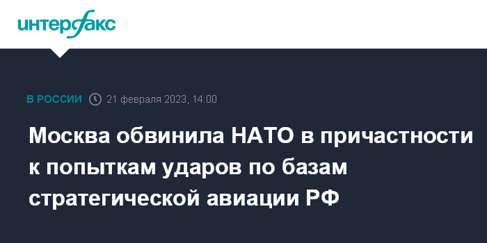 Москва. 21 февраля. INTERFAX.RU - Президент России Владимир Путин заявил, что НАТО причастно к попыткам нанесения ударов по базам стратегической авиации РФ.