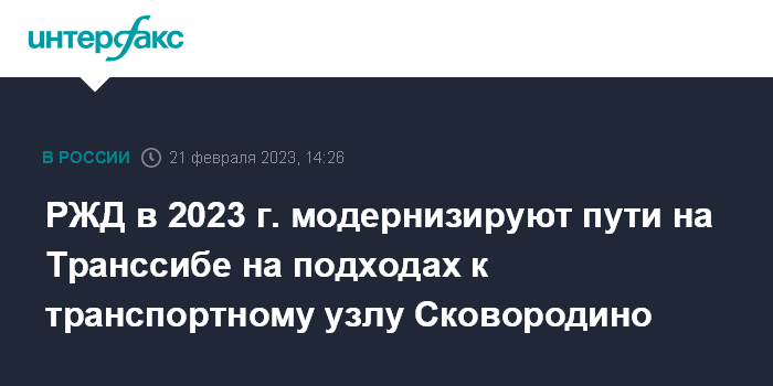 РЖД в 2023 г. модернизируют пути на Транссибе на подходах к транспортному узлу Сковородино