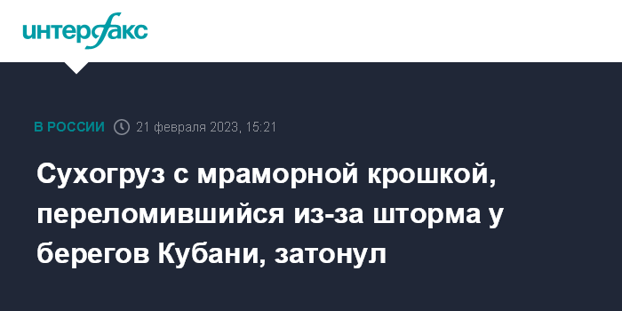 Сухогруз с мраморной крошкой, переломившийся из-за шторма у берегов Кубани, затонул