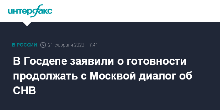 В Госдепе заявили о готовности продолжать с Москвой диалог об СНВ