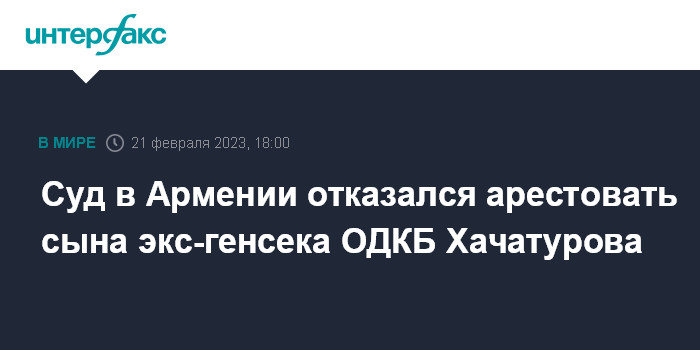 Суд в Армении отказался арестовать сына экс-генсека ОДКБ Хачатурова