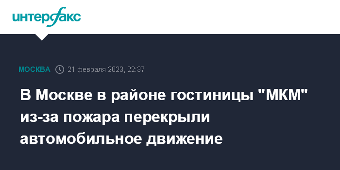 Москва. 21 февраля. INTERFAX.RU - Движение автомобилей в районе гостиницы "МКМ" ограничено из-за пожара, сообщает во вторник департамент транспорта Москвы.