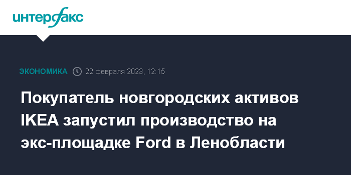 Покупатель новгородских активов IKEA запустил производство на экс-площадке Ford в Ленобласти