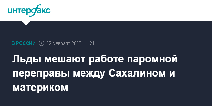 Москва. 22 февраля. INTERFAX.RU - Сложная ледовая обстановка сохраняется в Татарском проливе на подходах к порту Ванино Хабаровского края, она тормозит работу паромной переправы Ванино-Холмск, связывающей Сахалин с материком, сообщило АО "Транспортно-экспедиторская компания "Дальтранссервис".