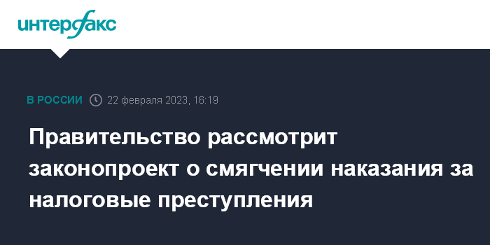 Москва. 22 февраля. INTERFAX.RU - Правительство в среду рассмотрит законопроект о смягчении уголовной ответственности за налоговые преступления, объявил на заседании премьер-министр Михаил Мишустин.