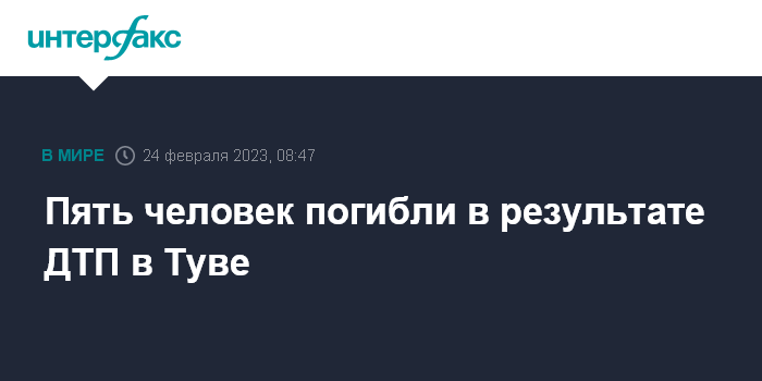 Москва. 24 февраля. INTERFAX.RU - Авария с пятью погибшими произошла в ночь на 24 февраля на территории Улуг-Хемского района в Туве, сообщил глава республики Владислав Ховалыг в своем телеграм-канале.