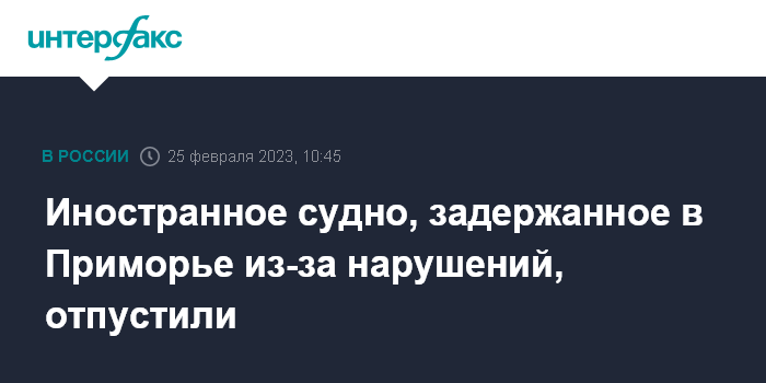 Иностранное судно, задержанное в Приморье из-за нарушений, отпустили