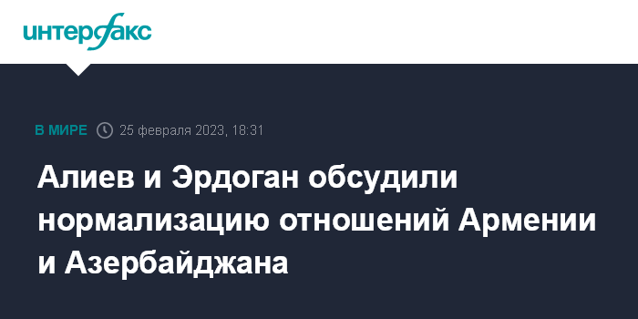 Москва. 25 февраля. INTERFAX.RU - Президенты Азербайджана и Турции Ильхам Алиев и Реджеп Тайип Эрдоган провели встречу в субботу в Стамбуле, обсудили развитие двусторонних отношений, армяно-азербайджанские отношения.