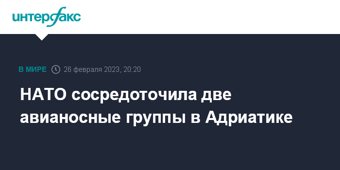 Москва. 26 февраля. INTERFAX.RU - США и союзники по НАТО сосредоточили в акватории Адриатического моря две авианосные ударные группы, следует из данных командования 6-го американского оперативного флота.