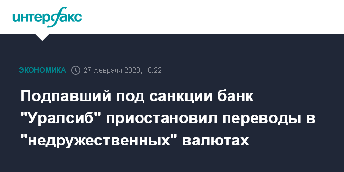 Подпавший под санкции банк "Уралсиб" приостановил переводы в "недружественных" валютах