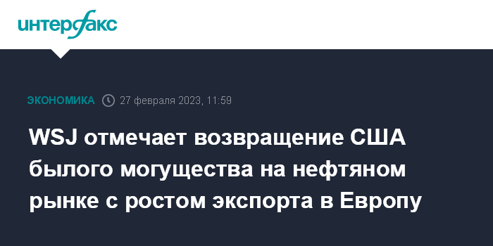 WSJ отмечает возвращение США былого могущества на нефтяном рынке с ростом экспорта в Европу