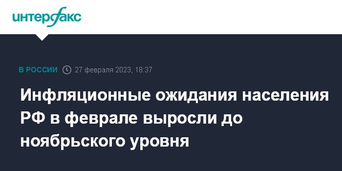 Москва. 27 февраля. INTERFAX.RU - Инфляционные ожидания населения после трех месяцев снижения в феврале 2023 года выросли и вернулись к уровню ноября 2022 года, говорится в комментарии Банка России.