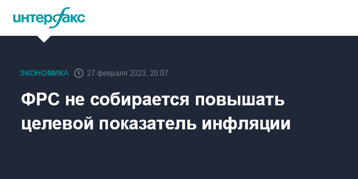 Москва. 27 февраля. INTERFAX.RU - Федеральная резервная система США не планирует менять целевой показатель инфляции, в настоящее время находящийся на уровне 2% годовых, заявил в Гарвардском университете член совета управляющих ФРС Филип Джефферсон.