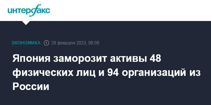 Япония заморозит активы 48 физических лиц и 94 организаций из России