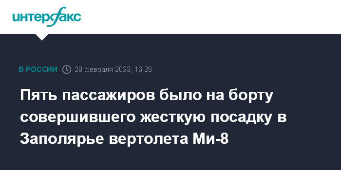 Пять пассажиров было на борту совершившего жесткую посадку в Заполярье вертолета Ми-8