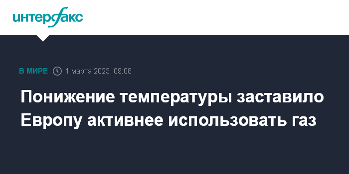 Москва. 1 марта. INTERFAX.RU - С начала недели в Европе немного похолодало, и если дневные температуры снизились незначительно, по ночам отмечаются заморозки. Это заставляет отрасль активнее расходовать газ и отбирать его из подземных хранилищ.