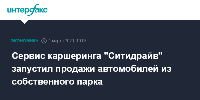 Москва. 1 марта. INTERFAX.RU - Оператор каршеринга "Ситидрайв" запускает продажи автомобилей из собственного парка, говорится в сообщении компании.