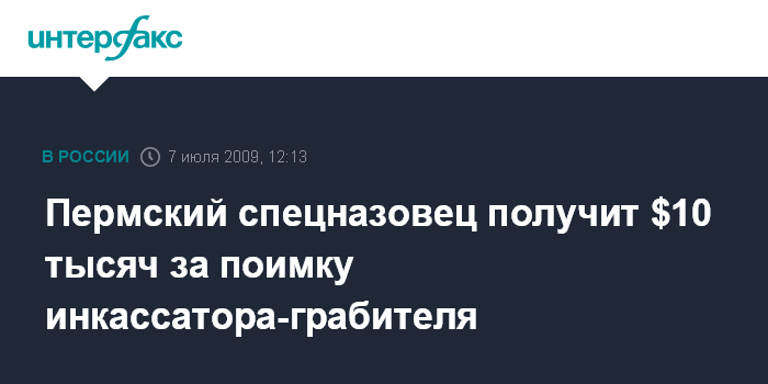 Пермский спецназовец получит $10 тысяч за поимку инкассатора-грабителя