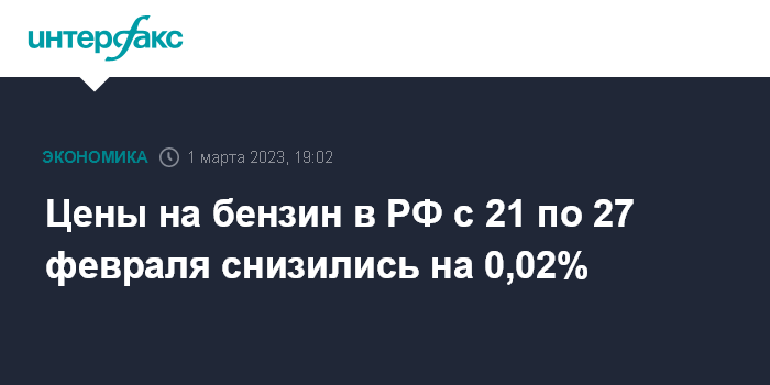 Цены на бензин в РФ с 21 по 27 февраля снизились на 0,02%