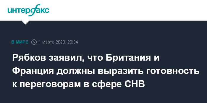 Рябков заявил, что Британия и Франция должны выразить готовность к переговорам в сфере СНВ