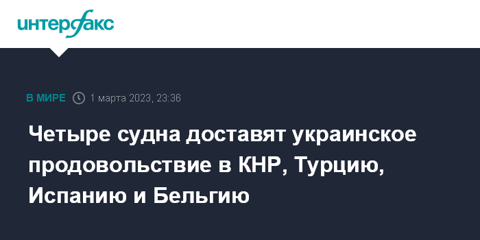 Четыре судна доставят украинское продовольствие в КНР, Турцию, Испанию и Бельгию