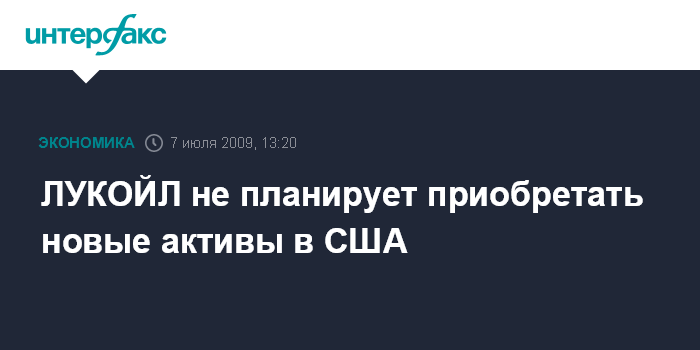 Москва. 7 июля. INTERFAX.RU - НК "ЛУКОЙЛ" не планирует приобретать новые активы в США, заявил "Интерфаксу" президент компании Вагит Алекперов.