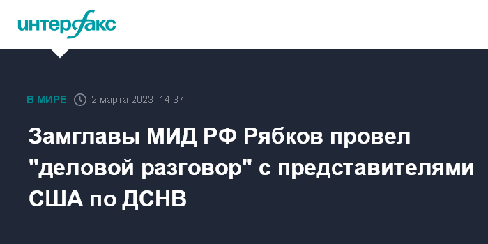 Москва. 2 марта. INTERFAX.RU - Замглавы МИД РФ Сергей Рябков сообщил, что у него были контакты с американской стороной по вопросам Договора о стратегических наступательных вооружениях (ДСНВ) в ходе его текущего визита в Женеву.